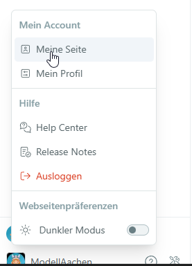 - den eigenen Namen unten links auswählen und Meine Seite öffnen.