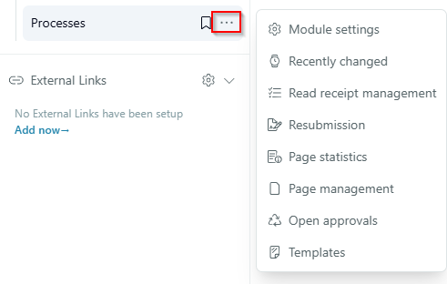- For key users and module responsible, there is also a cogwheel next to the 3-dot menu to make specific settings for the module.