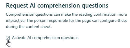 - Enable AI comprehension questions: After enabling read confirmation, toggle AI questions in the same modal.